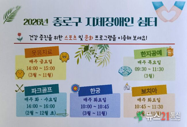 종로구 지체장애인을 위한 따뜻한 휴식과 건강 증진의 공간인 **'종로구 지체장애인 쉼터'**가 2026년 한 해 동안 다채로운 스포츠·문화 프로그램과 원데이 클래스를 운영하며 이용자들의 큰 호응을 기대하고 있다.