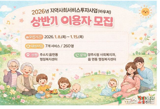 양주시가 2026년 1월 8일부터 1월 15일까지 지역사회서비스투자사업 이용자를 모집한다.