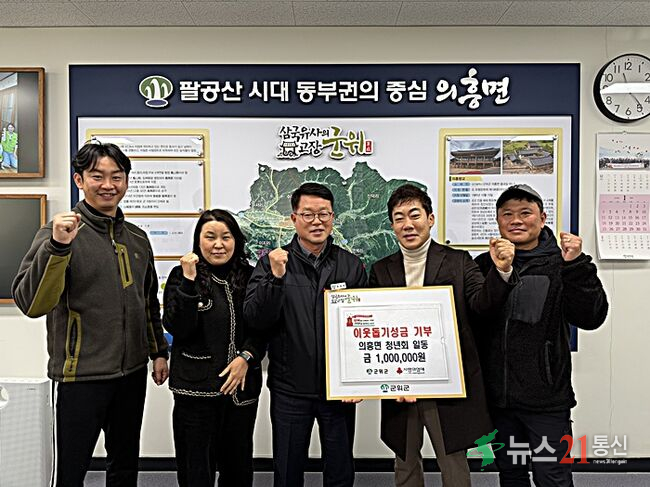 의흥면 청년회는 지난 5일, 군위군 의흥면에 이웃돕기 성금 100만원을 기부하며 지역 사회에 따뜻한 마음을 전달했다.