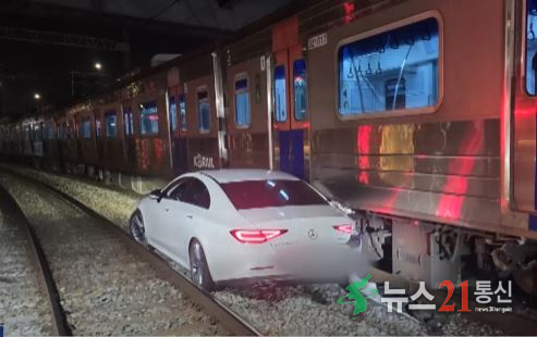 그제 밤 서울 용산구 서빙고 건널목에서 술에 취한 20대 여성이 몰던 승용차가 열차와 충돌하는 사고가 발생했다.