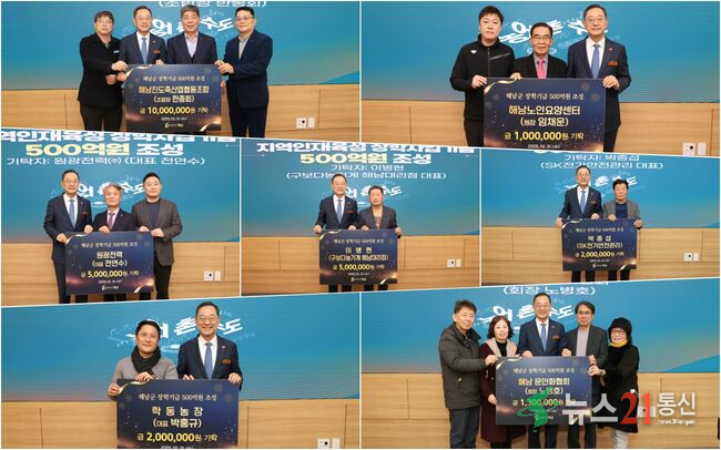 [뉴스21 통신=박철희 ] 해남군이 추진 중인 장학사업기금 500억 원 조성 사업이 지난해 말 기준 234억 1,100만 원을 돌파하며 순조롭게 진행되고 있다.