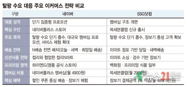 쿠팡 개인정보 유출 사태 이후 네이버와 SSG닷컴이 이른바 '탈팡(쿠팡 탈퇴)' 고객 흡수에 가장 적극적으로 나서고 있다. 이들 이커머스는 단순 할인 이벤트를 넘어 쿠팡이 장악해온 '속도·신선·생활 밀착형 소비'를 대체할 수 있는 서비스 경험을 선점하려는 전략이 본격화되는 모습이다.