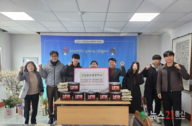 남양주시는 6일 진접오남행정복지센터가 광릉중학교(교장 민연식)로부터 김장김치와 떡 등 후원물품을 전달받았다고 밝혔다.