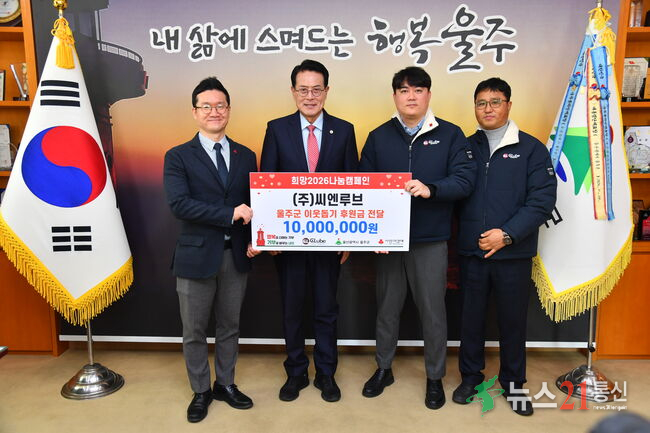 ㈜씨엔루브(대표 최태영)가 7일 울주군에 지역 저소득층을 위한 성금 1천만원을 전달했다.