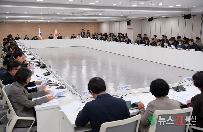 광주전남행정통합 관련 공공기관장 및 간부회의[뉴스21통신/장병기] 광주광역시는 8일 시청 중회의실에서 시·자치구·공공기관 주요 간부들이 참석한 긴급 확대 간부회의를 개최했다. 광주·전남 공동 생존을 위한 ‘행정통합’을 전방위적으로 대응하기 위해서다.