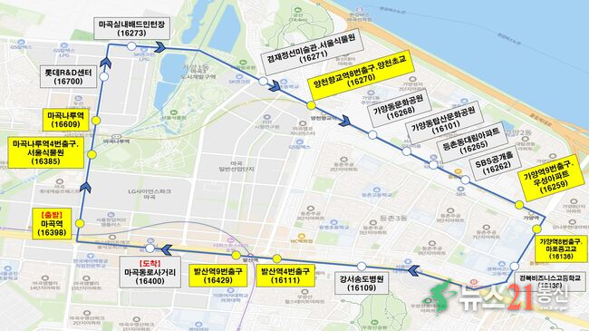 운행 노선은 ▲공항시장역~신방화역~송정역(1번 노선) ▲마곡역~마곡나루역~양천향교역~가양역~발산역(2번 노선) ▲가양역~증미역~염창역~등촌역(3번 노선) ▲화곡역~우장산역~발산역(4번 노선) ▲등촌역~까치산역~화곡역(5번 노선) 등이다.
