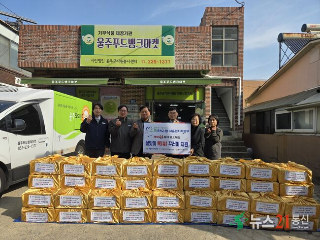 지원물품은 떡국, 과일, 장조림, 참기름, 강정 등 설 명절에 필요한 식료품으로 구성됐으며, 울주푸드뱅크마켓을 통해 대상 가정에 배분될 예정이다.
