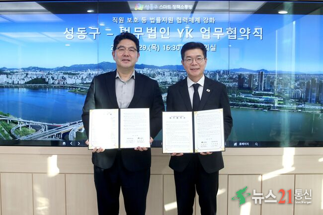 서울 성동구(구청장 정원오)는 지난 1월 29일 직원 보호 등 법률 지원 협력체계 강화를 위해 법무법인 YK와 업무협약을 체결했다고 밝혔다.