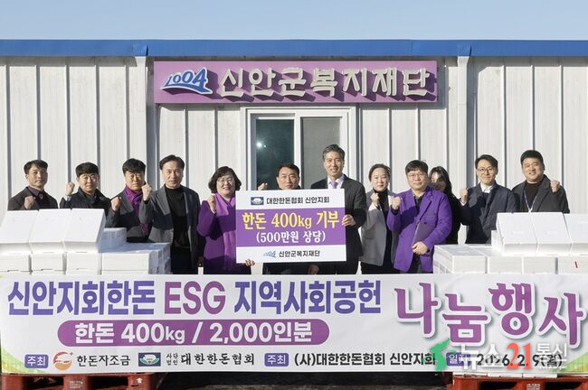 [뉴스21 통신=박민창 ] 신안군복지재단(이사장 강정희)은 설 명절을 앞두고 지난 9일, 대한한돈협회 신안지회(지회장 박태오)로부터 한돈 선물세트 200박스를 지원받았다고 밝혔다.대한한돈협회 신안지회는 2023년부터 매년 명절마다 지역 내 어려운 이웃들에게 따뜻한 마음을 전하기 위해 꾸준히 한돈 선물세트를 기부해 오고 있다. 이번에 전...