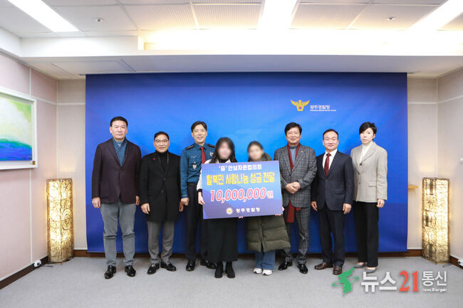 안보자문협의회 장학금 전달식 모자이크(사진=광주경찰청)[뉴스21통신/장병기 기자] 광주경찰청은 오늘 10일 안보자문협의회(회장 양진석) 임원진이 참석한 가운데 설 명절을 앞두고 탈북민에게 사랑나눔 지원금 1,000만원을 전달했다.