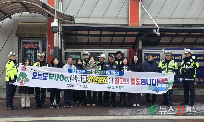 [뉴스21 통신=장두진 ] 전남 함평군은 설 명절을 앞두고 함평공영터미널 일원에서 교통사고 예방과 안전한 교통문화 정착을 위한 ‘오늘도 무사go’ 캠페인을 실시했다고 10일 밝혔다.