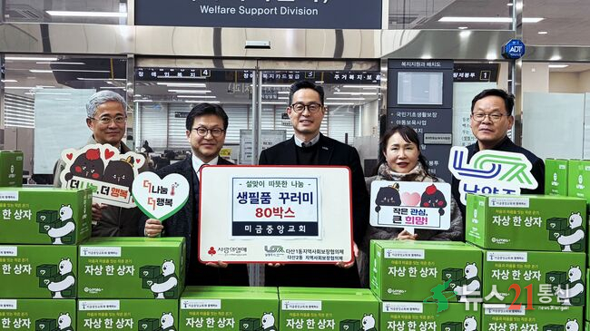 남양주시는 10일 미금중앙교회(담임목사 김양천)가 설 명절을 앞두고 지역 내 복지사각지대에 놓인 취약계층을 위해 생필품 꾸러미 80박스를 다산1․2동 지역사회보장협의체에 기탁했다고 밝혔다.