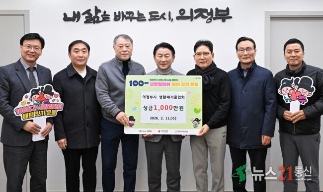 의정부시는 2월 11일 의정부시 생활폐기물협회(지회장 최상갑)가 설 명절을 맞아 저소득층을 위한 성금 1천만 원을 전달했다고 밝혔다.