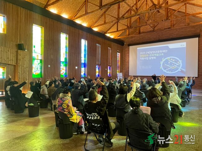 [뉴스21 통신=이준범 ]담양군문화재단(이사장 정철원, 이하 재단)이 오는 2월 24일 해동문화예술촌 오색동에서 지역 주민과 예술인들을 대상으로 ‘2026년 생활문화·문화예술교육 지원사업 설명회’를 개최한다.이번 설명회는 올해 추진되는 주요 지원사업의 방향을 안내하고, 전년도 성과를 바탕으로 더욱 개선된 사업 계획을 공..