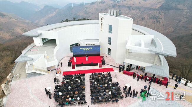 [뉴스21 통신=박철희 ] 의령군이 한우산의 천혜 자연환경과 밤하늘 자원을 활용한 복합 산림휴양 공간 ‘한우산 별천지’ 조성 사업을 완료하고 지난 11일 준공식을 개최했다.
