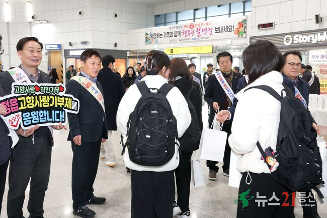 [뉴스21통신/김문기]민족 대명절 설을 맞아 고향을 찾은 귀성객들을 환영하는영 행사가 열렸다.