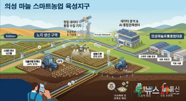 이번 사업 선정으로 의성군은 지난 2023년부터 사곡면에 시범사업으로 추진해온 노지스마트팜 모델 구축 성과를 2028년까지 3년간 단계적으로 의성읍 등 인근 9개 읍‧면으로 확산할 계획이다. 도에서는 인공위성, 토양센서 등으로 수집한 데이터를 AI 분석을 통해 최적의 영농 의사결정을 지원하고 자동 관수시스템 도입과 드론‧자율주행 트랙터 등을 활용한 공동 영농체계를 구축해 마늘 생산성 향상을 도모할 계획이다.