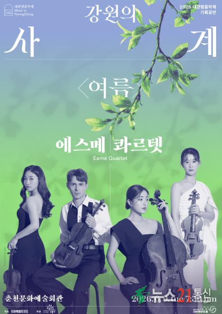 □ 강원문화재단(대표이사 신현상)은 대관령음악제 기획공연 강원의 사계 <여름> 공연에 세계가 주목하는 현악사중주단 ‘에스메 콰르텟’을 초청해 6월 9일(화) 오후 7시 30분 춘천문화예술회관에서 공연을 개최한다.