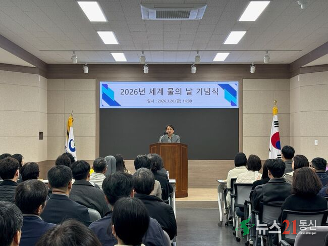 사진=세계 물의 날 기념식[뉴스21통신/장병기] 광주광역시는 ‘세계 물의 날’을 맞아 20일 광주환경공단 대회의실에서 5개 자치구, 광주환경공단 관계자 등 100여 명이 참석한 가운데 ‘2026년 세계 물의 날 기념행사’를 개최했다.