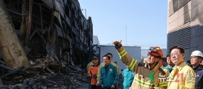 [뉴스21 통신=추현욱 ] 이재명 대통령이 10명이 넘는 인명피해를 내고 10시간 반 만에 불이 꺼진 대전 자동차 부품 공장을 방문해 피해 상황과 실종자에 대한 수색 및 구조 활동 상황을 점검했다.