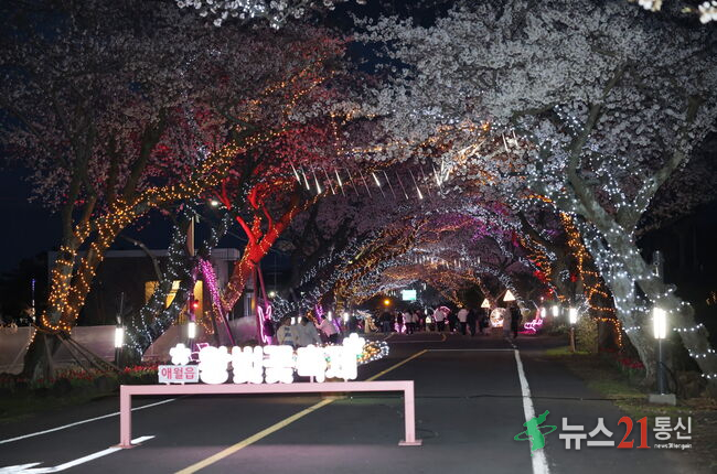❍ 축제 첫날에는 어린이 벚꽃 사생대회와 벚꽃 OX 퀴즈대회가 열리며, 오후 6시 30분에는 개막식과 함께 왕벚꽃 거리 점등식이 진행돼 낭만적인 봄밤의 정취를 느낄 수 있다.