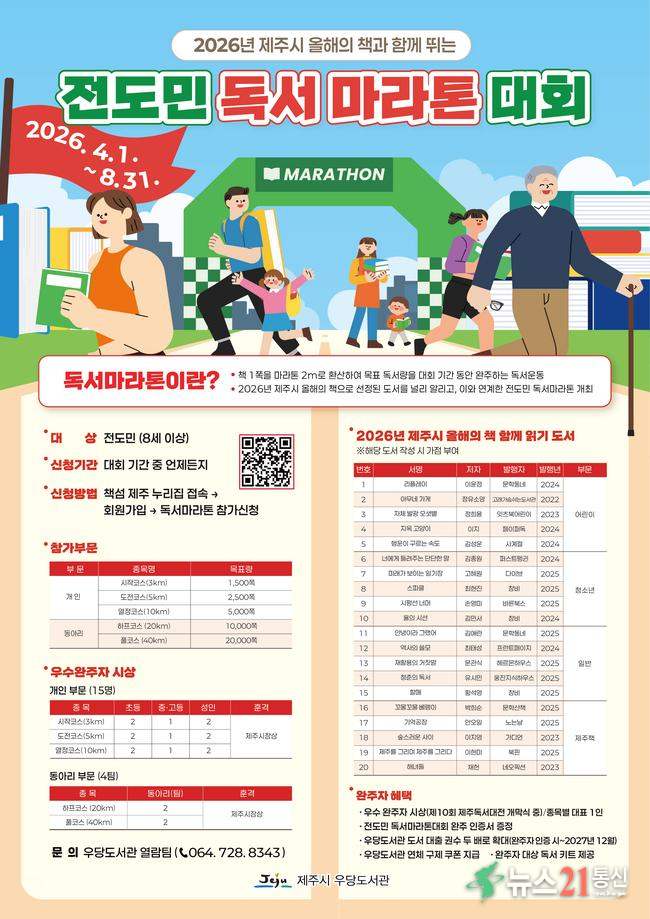 우당도서관은 도민의 일상 속 독서 습관 형성과 책 읽는 제주시 분위기 확산을 위해 오는 4월부터 8월까지 ‘전도민 독서마라톤 대회’를 운영한다.
