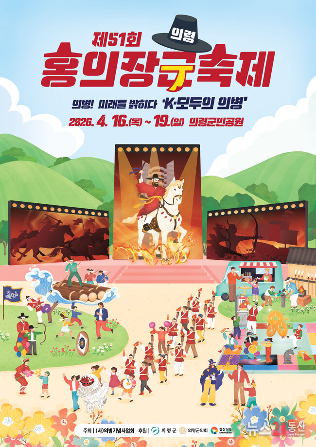 [뉴스21 통신=박철희 ] ‘의병의 성지’ 의령군이 오는 4월 16일부터 19일까지 의령군민공원 일원에서 제51회 ‘홍의장군축제’를 개최한다.