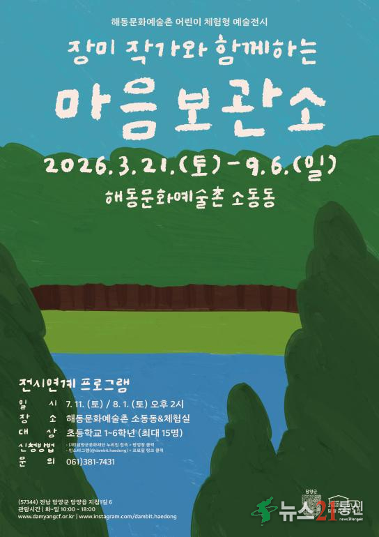 담양군문화재단 해동문화예술촌이 지난 21일, 2026년 상반기 기획전시 ≪틈새의 공생≫과 어린이 체험형 예술전시 ≪장미 작가와 함께하는 마음보관소≫를 동시에 개최하며 지역민과 관광객들에게 수준 높은 시각예술 향유 기회를 제공한다.