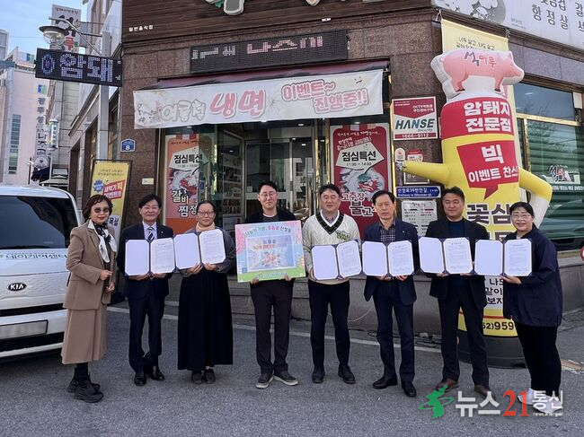 신창동 어르신 돌봄기관 업무협약식[뉴스21통신/장병기] 광주 광산구 신창동(동장 김승일)이 23일 ‘웃음꽃 천원밥상’인 석마루에서 취약계층 어르신들에게 지속가능한 복지 서비스를 제공하기 위해 지역 돌봄기관과 업무협약을 체결했다.