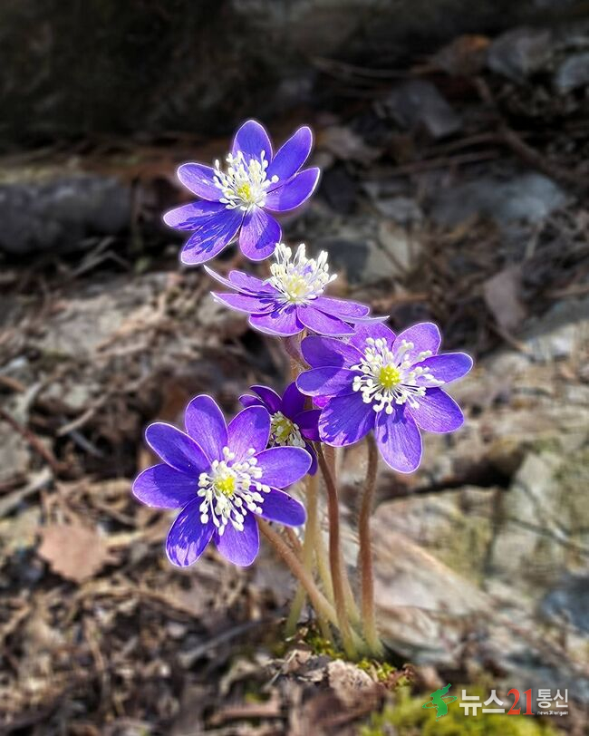 - 변산 청 노루귀는 이른 봄에 피는 야생화로, 주로 숲속 그늘에서 자라는 다년생 식물이다.