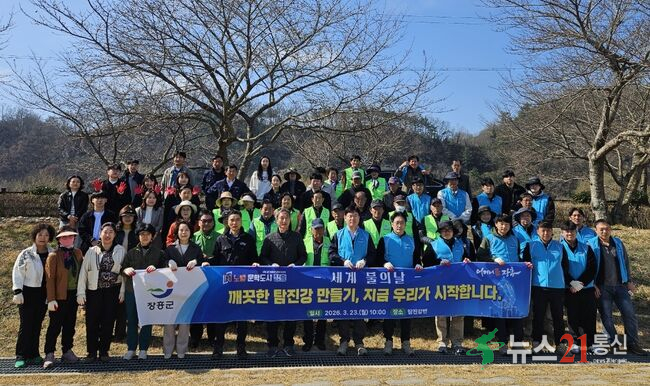 장흥군은 2026년 세계 물의 날(3월 22일)을 맞아 물의 소중함을 되새기고 안전한 식수원 확보를 위한 환경보전 실천의 일환으로, 지난 3월 23일 탐진강변 일원에서 환경정화활동을 실시했다고 밝혔다.