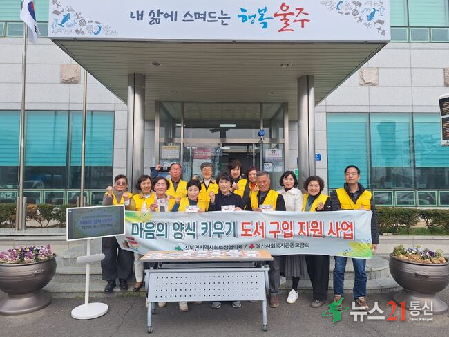 사진제공:울주군청 울주군 상북면 지역사회보장협의체(공동위원장 박미영, 정상화)가 24일 신학기를 맞아 취약계층 학생을 위한 ‘마음의 양식 키우기 도서 구입 지원사업’을 실시했다.