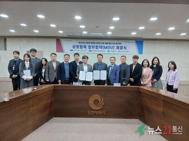 인천광역시(시장 유정복)는 3월 25일 인천광역시교육청과 ‘청소년의 건전한 성장과 안전한 교육생활환경 조성’을 위한 업무협약(MOU)을 체결했다고 밝혔다.