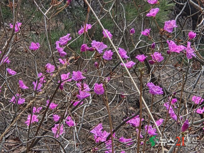 산 일대에는 진달래가 대규모로 자생해 4월이면 산 전체가 분홍빛으로 물든다.