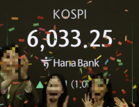 [뉴스21 통신=추현욱 ] 코스피 지수는 25일 장중 사상 처음으로 6000을 돌파, 전일 대비 1.91% 오른 6083.86에 마감했다. 코스닥 지수는 0.02% 오른 1165.25에 장을 마쳤다.이 대통령은 대선 후보 시절 임기 내 코스피 5000 달성을 목표로 내걸었는데 지난달 22일 지수가 장 중 처음으로 5000을 돌파하며 취임 7개월 만에 목표를 달성했다. 이후에도 지수는 ..