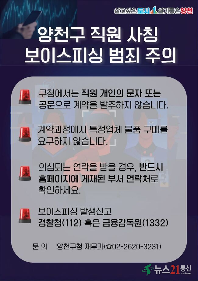 “일단 끊고 확인하세요”…양천구, 공무원 사칭 사기 주의보 발령