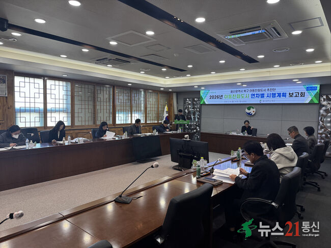 [뉴스21 통신=최병호 ](사진출처-울산북구청)북구는 9일 구청 상황실에서 아동친화도시 추진단 회의를 열어 2026년 연차별 시행계획안을 공유하고 분야별 협업 방안을 논의했다.