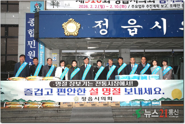 전북특별자치도 정읍시의회는 지난 10일 민족 고유의 명절인 설을 앞두고 전통시장 이용을 장려하고 지역경제에 활력을 불어넣기 위한 장보기 행사를 가졌다. 전통시장 이용 캠페인에서는 경기 둔화와 소비 감소로 어려움을 겪고 있는 전통시장 상인들을 통해 지역 농산물과 각종 생필품을 구매하는 등 실질적인 도움을 전하는 행사였다.아...
