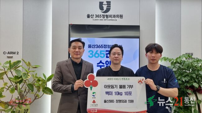울산365 정형외과 의원은 개원 축하 화환 대신 받은 쌀 10kg 10포를 12일 북구 송정동 행정복지센터에 기부했다.