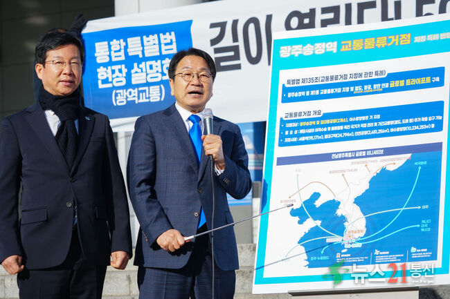 [뉴스21통신/장병기 기자] 광주송정역이 철도-항공-항만을 잇는 ‘글로벌 트라이포트’의 출발점으로 도약한다. 또 장성을 출발해 광주송정역을 거쳐 함평과 영광으로 연결되는 광주신산업선에 수소열차 ‘HTX(Hydrogen Train Express)’를 도입해 서남권 광역교통체계를 새로 짠다.광주광역시는 23일 광주송정역 앞 광장에서 ‘하나...