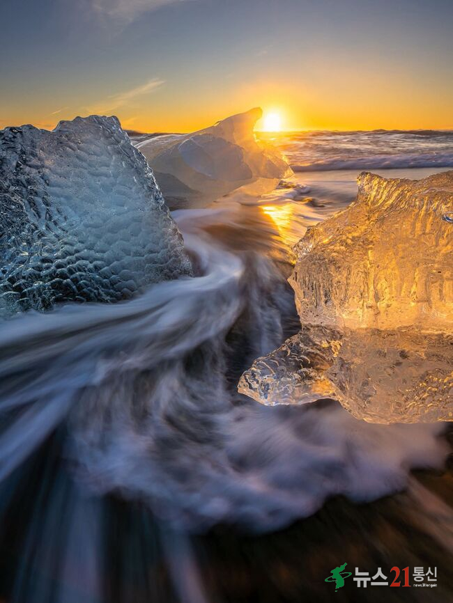 다이아몬드 비치는 아이슬란드 남부 해안에 위치한 유명 관광지이다.빙하에서 떨어져 나온 얼음 조각들이 검은 모래 해변 위에 흩어져 보석처럼 빛나는 것이 특징이다.인근의 요쿨살론 빙하호수에서 흘러나온 얼음이 바다로 이동하며 형성된다.검은 화산 모래와 투명한 얼음의 대비가 독특한 경관을 만든다.사진 촬영 명소로 세계적으로 ..