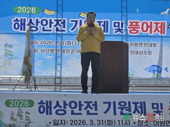 ▲가세로 태안군수가 인사말을 하고있다./사진제공=뉴스21통신DB[뉴스21 통신=이준상 ] 충남 태안군 만대항에서 올 한 해 바다 위 안전과 풍요를 기원하는 전통 행사가 열렸다.사단법인 태안군 서부선주협회(회장 정장희)는 지난 3월 31일 오전 11시 태안군 이원면 만대항 일원에서 ‘2026 해상 안전기원제 및 풍어제’를 개최했다.▲‘2...
