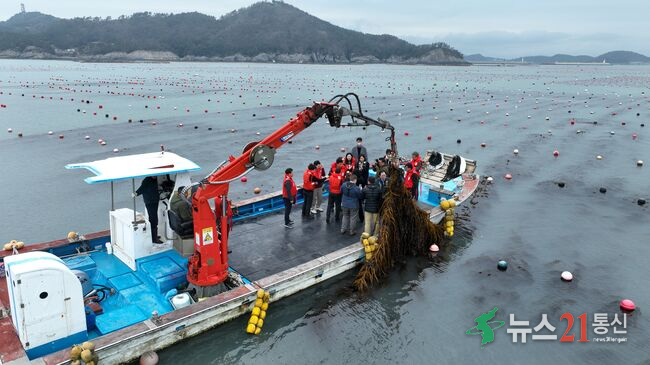 사진은 완도 다시마 양식장 전경[뉴스21통신/장병기] 완도군이 해조류 블루카본 탄소 거래를 통해 창출된 수익을 지역민에게 지급하는 일명 ‘완도형 바다 연금’ 추진에 탄력을 받게 됐다.