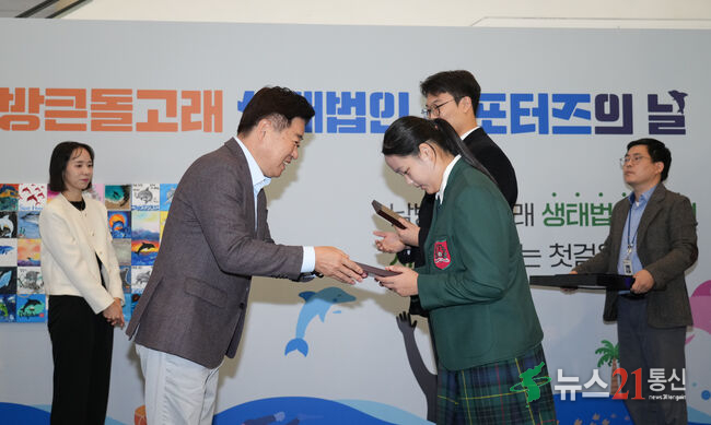 서포터즈 ‘화랑 제주’ 학생들은 ‘우리 바다의 친구 돌고래에게’라는 제목의 편지를 낭독하며 “돌고래를 지켜야 우리 바다도 미래도 지킬 수 있다”는 의지를 전했다. 이어 서포터즈 대표는 제주특별법 개정을 촉구하는 입법 청원서를 오영훈 제주도지사와 양영식 제주도의회 농수축경제위원장에게 전달했다. 청원서는 국회로 제출될 예정이다.