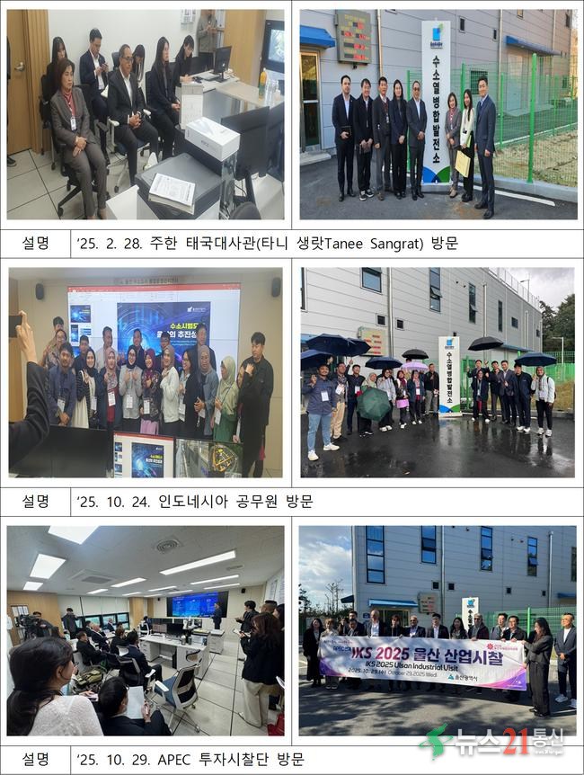 [뉴스21 통신=최세영 ]율동 수소연료전지 열병합발전소는 2024년 6월 상용 운전을 시작한 이래, 수소 에너지를 실생활에 접목한 선도적인 모형으로 평가받고 있다. 작년 한 해에만 국내외 28개 기관및 기업체에서 약300여 명의 관계자 들이 이곳을 방문했다. 특히 주한 태국대사, 국무조정실, APEC(아시아 태평양 경제협력체) 방문단, 중국 우시시 ...