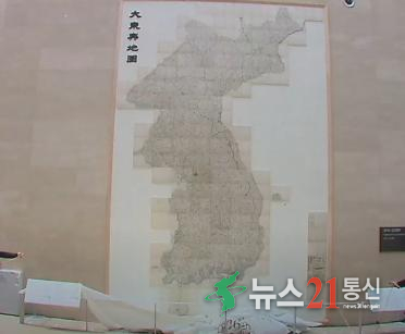 건물 2층 높이를 넘는 대동여지도 모습이 모습을 드러낸다.