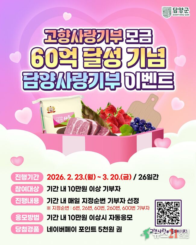 담양군(군수 정철원)이 고향사랑기부제 누적 모금액 60억 원을 돌파하며 명실상부한 대한민국 대표 기부 지자체로서의 위상을 굳건히 했다.
