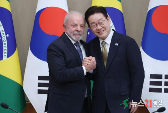 [뉴스21 통신=추현욱 ] 한국과 브라질이 23일 루이스 이나시우 룰라 다시우바 브라질 대통령의 국빈 방한을 계기로 양국 관계를 '전략적 동반자 관계'로 격상했다.