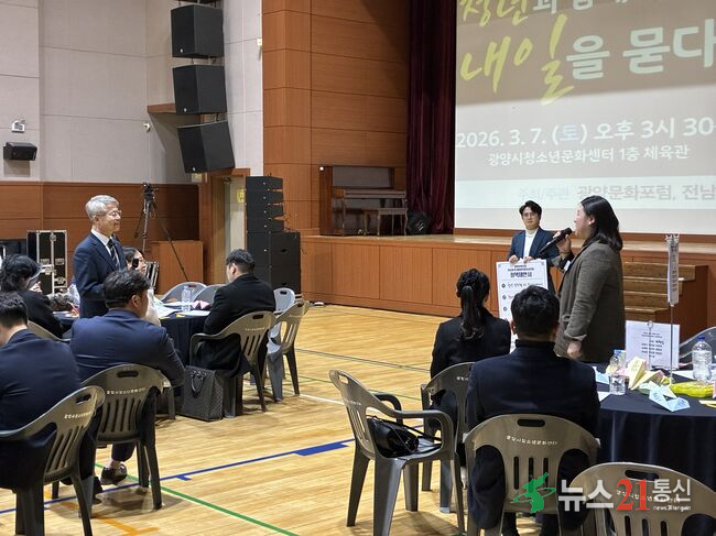 이 날 참가자들이 제시한 주요 의제는 ▶청년 정착형 AI 일자리 패키지 ▶청년이 기획하는 전남ㆍ광주 통합 청년축제 ▶작은학교 특성화 교육 ▶공공돌봄 서비스 확대 ▶농촌 정주환경 개선 등 5가지다. 이어진 조별 발제에서는 지역 청년들의 현실적인 고민이 배어났다.