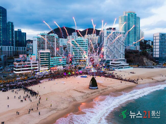 행사의 하이라이트인 '달집태우기'는 오후 6시 21분 일몰 시각에 맞춰 진행되었다. 달집이 타오르자 백사장을 가득 메운 관람객들은 저마다 손을 모으고 한 해의 건강과 행복을 기원했다. 달집이 화염에 휩싸이는 순간 밤하늘을 수놓은 화려한 불꽃놀이가 더해져 송도 앞바다는 장관을 연출했다.
